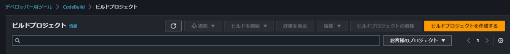 1.CodeBuildに移動し、”ビルドプロジェクトを作成する”を押下