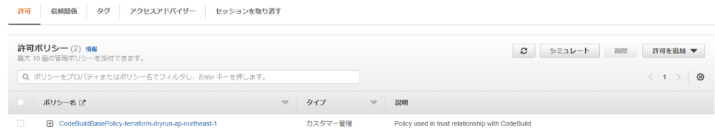 dryrun用のCodeBuildと同様に S3の読取権限を付与する必要があるが、
