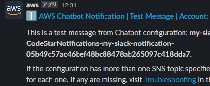 CodeBuildが動く条件を実施し、メッセージが届くことを確認
